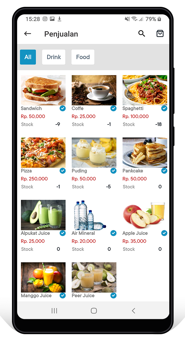 Dengan dilengkapi koneksi printer bluetooth memudahkan mencetak invoice untuk di cetak.